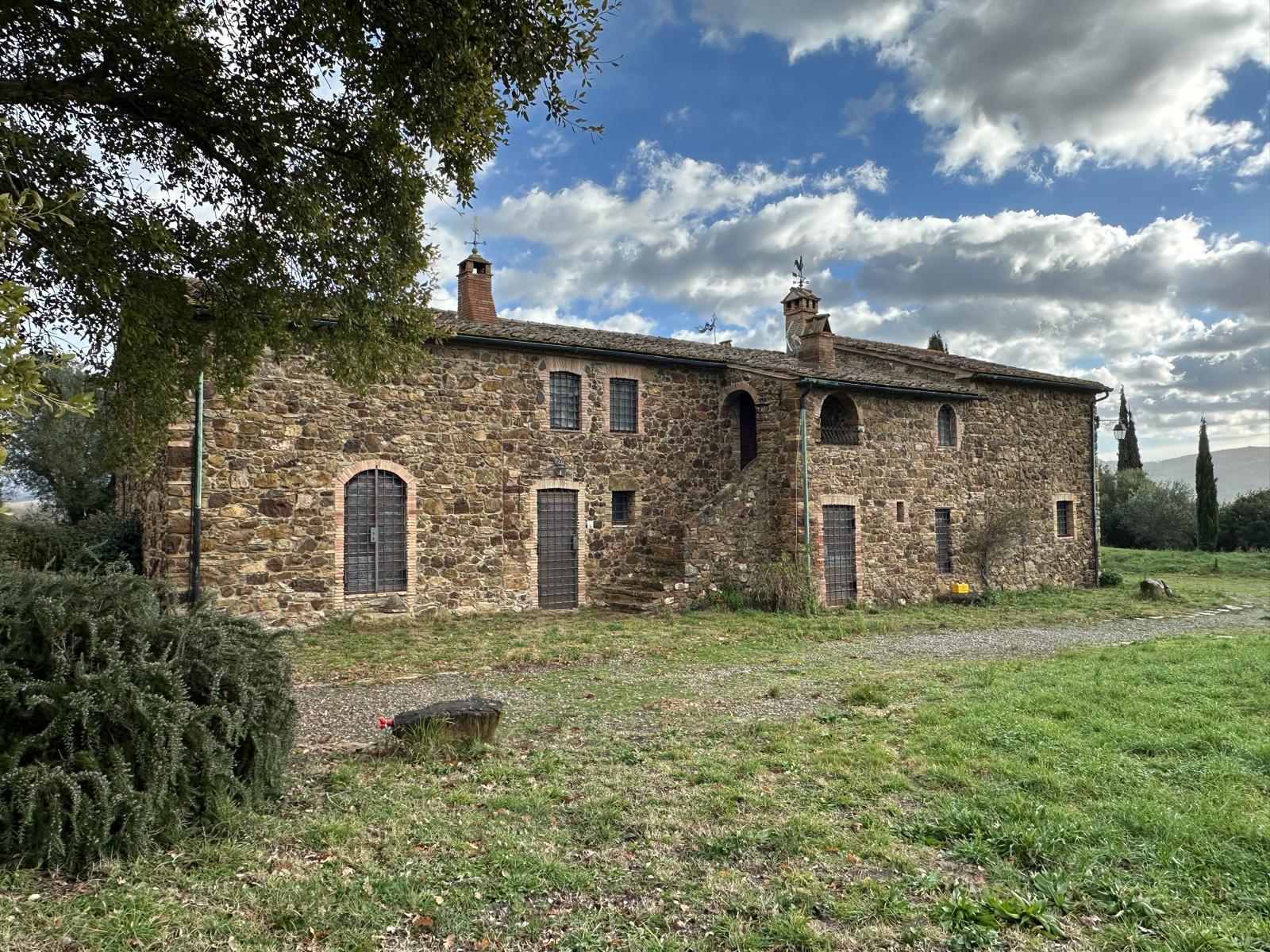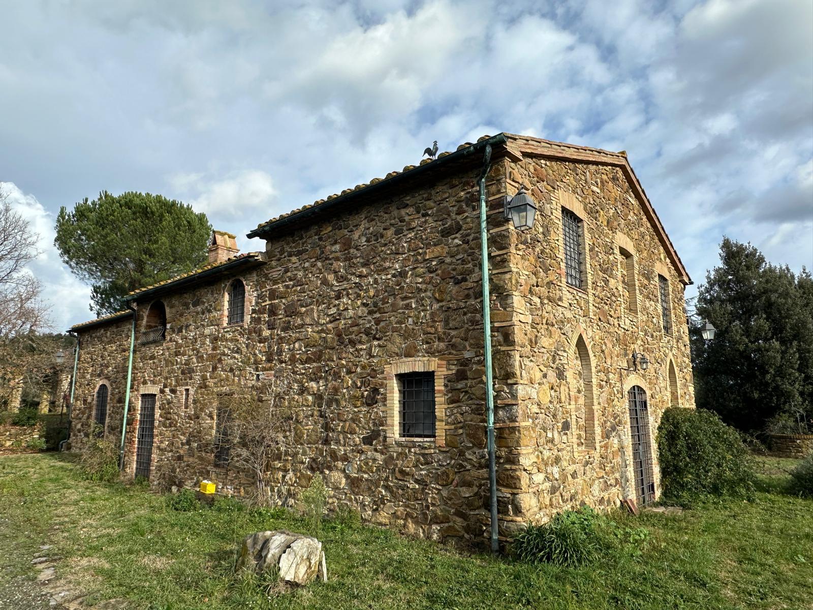 At the heart of the estate stands a splendid 19th-century stone farmhouse, masterfully restored using materials of exceptional quality and refined craftsmanship. Extending over approximately 430 sqm, the residence is reached via a picturesque tree-lined avenue that enhances the sense of arrival and privacy. Its setting is both secluded and panoramic, offering sweeping views across the Tuscan countryside.